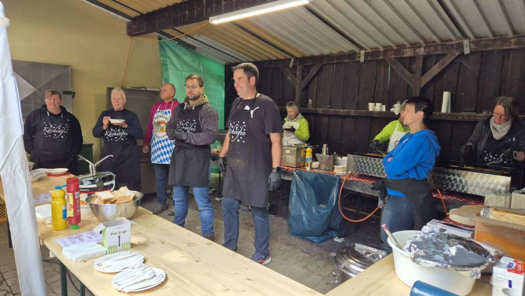 Neben den packenden Duellen auf dem Rasen erwartet dich ein Fest für die ganze Familie. Wir sorgen dafür, dass niemand hungrig oder durstig nach Hause gehen muss. Freu dich auf herzhafte Würstchen oder vegetarischen Grillgerichte. Für die gemütliche Pause zwischendurch gibt es frischen Kaffee und leckeren selbstgebackenen Kuchen. Das Herzstück der Geselligkeit ist natürlich unser Bierrondell – der perfekte Ort, um über die Spiele zu fachsimpeln oder einfach mal wieder ausgiebig mit Nachbarn und Freunden zu quatschen. Komm vorbei und feier mit uns!