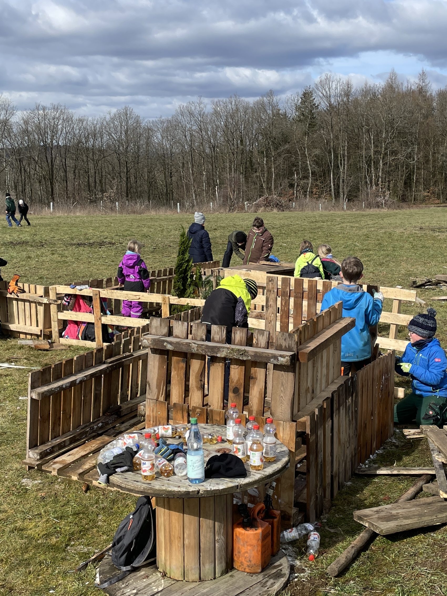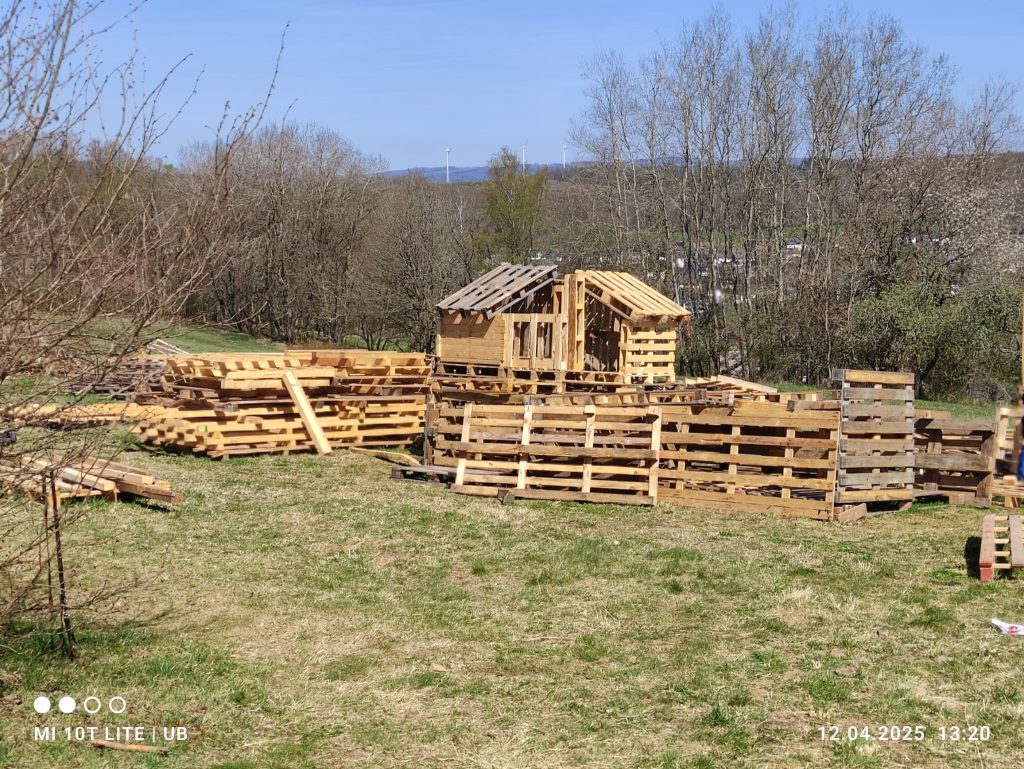 Nach den Ostertagen ist unser Paletten-Dorf noch nicht direkt Geschichte – die Hütten bleiben erst einmal stehen und zieren unseren Platz. Sobald der Frühling dann so richtig Fahrt aufnimmt und das Wetter wieder stabil ist, treffen wir uns alle zum großen gemeinsamen Aufräumen.
