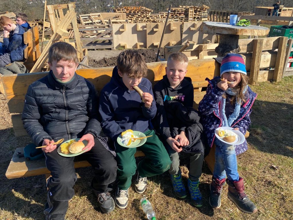 Und wer weiß… manchmal finden auf ganz „mysteriösen“ Wegen auch kleine Süßigkeiten durch die Erwachsenen den Weg ins Baucamp, um die Energiereserven der fleißigen Baumeister*innen wieder aufzufüllen.